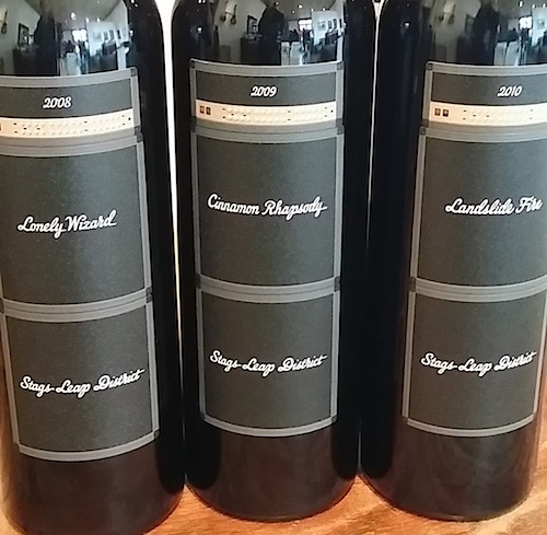 A number of years ago for Premier Napa Valley, a trade event to help the Napa Valley Vintners meet the needs of workers and families throughout Napa, Lede created their Bohemian Rhapsody/Sympathy for the Devil – Bohemian Devil Rock Block blend raising $38,000 for the NVV at the 2008 event, melding valley floor (Bohemian, right by the winery on the Yountville Crossover road) and hillside fruit, (with Devil lying on the steep Stags Leap hillside right off the Silverado Trail, right below Lede’s Poetry Inn.) In 2009 Cliff Lede Rock Blocks married Cinnamon Girl with Bohemian Rhopsody, for Cinnamon Rhapsody.